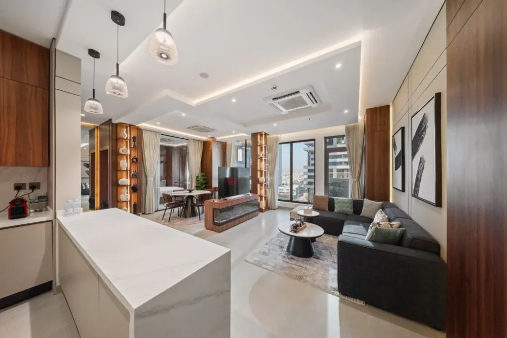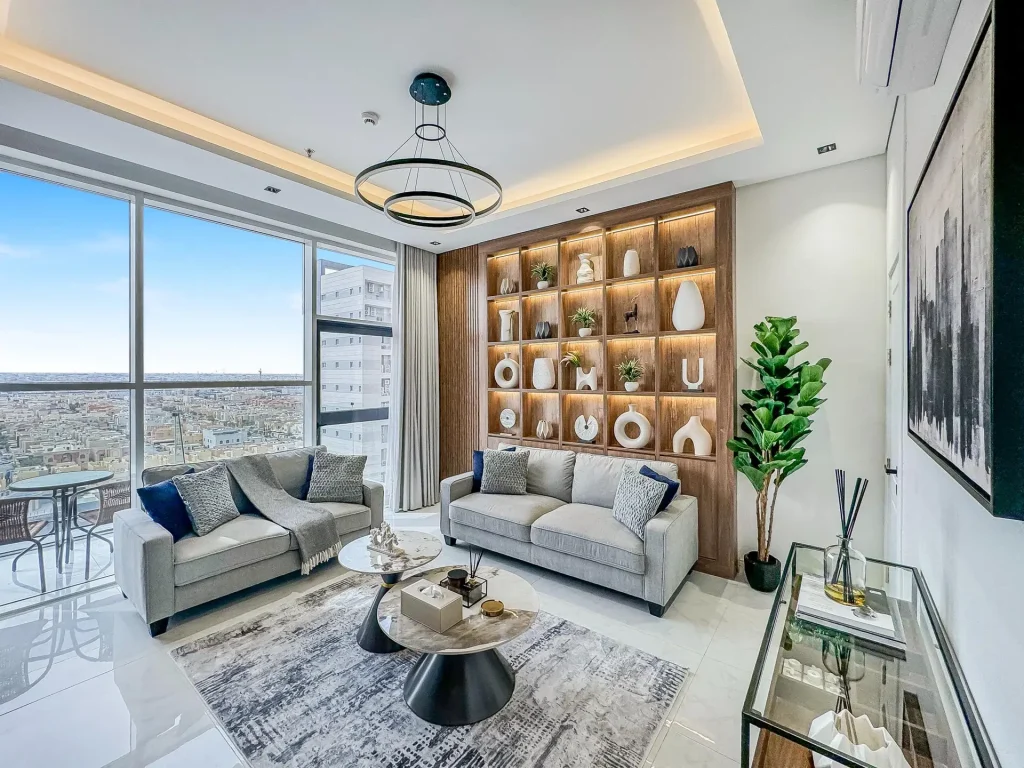 A stunning 95 square meter corner unit with 2 bedrooms, 2 bathrooms, and a fully equipped kitchen. Floor-to-ceiling windows fill the space with natural light and offer stunning views of Riyadh and KAFD....