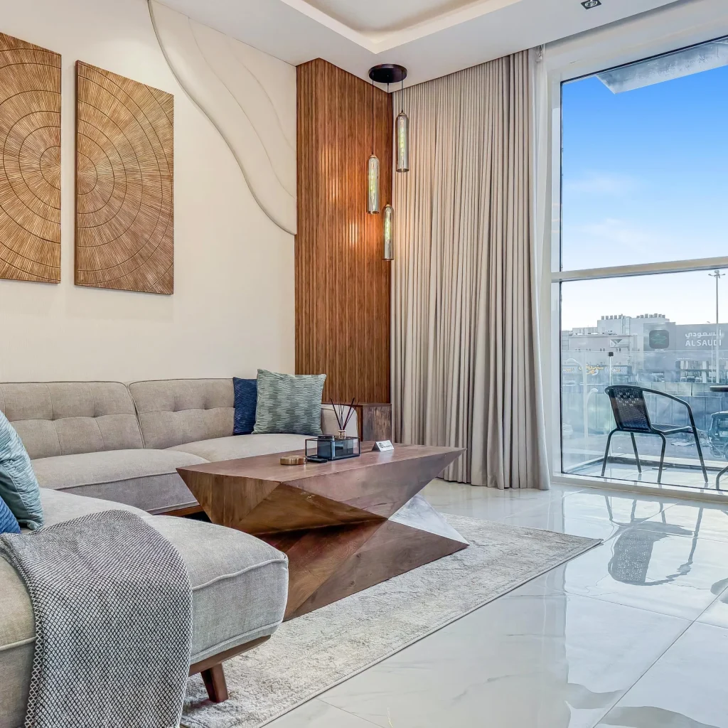 A warm 98 square meter condo featuring 2 bedrooms, 2.5 bathrooms, a full kitchen, and a welcoming dining area. Enjoy two private balconies with lovely views of the Riyadh skyline, perfect for relaxing in a warm and inviting atmosphere....